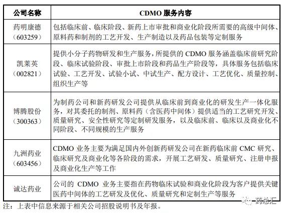 與 CRO 企業(yè)不同, CMO/CDMO 企業(yè)主要側(cè)重于藥物的生產(chǎn)服務(wù)。其中,CMO(合同定制生產(chǎn)機(jī)構(gòu))是指以合同定制形式為制藥企業(yè)提供中間體、原料藥、制劑的生產(chǎn)以及包裝等服務(wù)的企業(yè)。傳統(tǒng)的 CMO 企業(yè)僅提供以委托企業(yè)提供的技術(shù)路線為基礎(chǔ)的代工生產(chǎn)服務(wù)。隨著制藥公司對(duì)成本控制和效率提升的要求不斷提高,制藥企業(yè)希望 CMO 企業(yè)能夠承擔(dān)更多工藝研發(fā)、改進(jìn)的創(chuàng)新性服務(wù)職能, CDMO 企業(yè)應(yīng)運(yùn)而生。