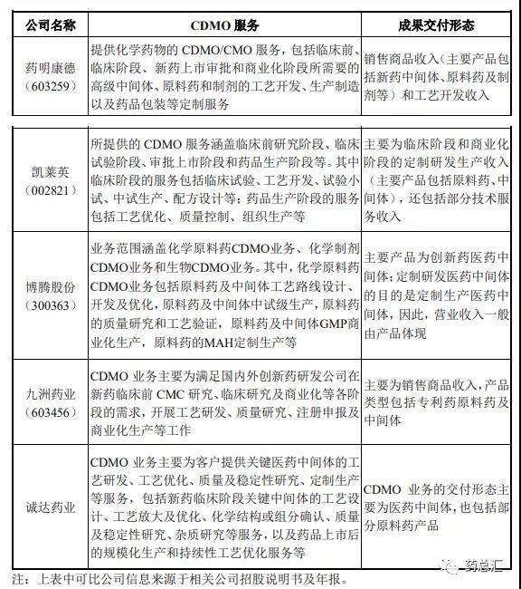 第四、公司 CDMO 服務(wù)內(nèi)容及成果交付形態(tài)與同行業(yè)可比上市公司的 CDMO 服務(wù)內(nèi)容及成果交付形態(tài)基本一致。具體比較如下: