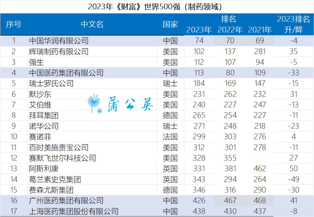 8月2日,2023年《財(cái)富》世界500強(qiáng)榜單發(fā)布,17家制藥公司上榜,其中,4家中國藥企榜上有名:中國華潤有限公司、中國醫(yī)藥集團(tuán)有限公司、廣州醫(yī)藥集團(tuán)有限公司、上海醫(yī)藥集團(tuán)股份有限公司榜上有名。廣藥集團(tuán)排名上升最快:廣藥集團(tuán)連續(xù)第三年上榜,排名年年上升,今年位居第426位,比去年排名躍升41位,已經(jīng)連續(xù)兩年在榜且排名穩(wěn)步上升。 中國醫(yī)藥集團(tuán)有限公司:113名,比去年下降33名; 上海醫(yī)藥集團(tuán)股份有限公司:438名,比去年下降了8名。 上榜的跨國公司:第102位,輝瑞;第112位,強(qiáng)生;第184位,羅氏;第231位,默沙東;第240位,艾伯維;第265位,拜耳;第271位,諾華;第299位,賽諾菲;第312位,百時(shí)美施貴寶;第328位,賽默飛;第331位,阿斯利康;第343位,葛蘭素史克;第346位 費(fèi)森尤斯。輝瑞,成為全球最大的制藥公司:輝瑞制藥有限公司排名上升35位至第102位,成為全球最大的制藥公司,利潤為31,372百萬美元。中美差距明顯:以輝瑞為代表的10家美國制藥企業(yè),平均銷售收入982億美元,平均利潤114億美元。上榜中國企業(yè)中被納入藥企行業(yè)只有中國醫(yī)藥和廣州醫(yī)藥兩家企業(yè)。這兩家企業(yè)平均銷售收入647億美元,平均利潤7.1億美元。兩項(xiàng)指標(biāo)遠(yuǎn)遠(yuǎn)低于美國企業(yè)。利潤如此之低,企業(yè)難以投入足夠資金用于創(chuàng)新。生物醫(yī)藥行業(yè)是關(guān)系人類未來發(fā)展的行業(yè)。上榜中國企業(yè)與美國企業(yè)的差距表明,我們還有很長的路要走。